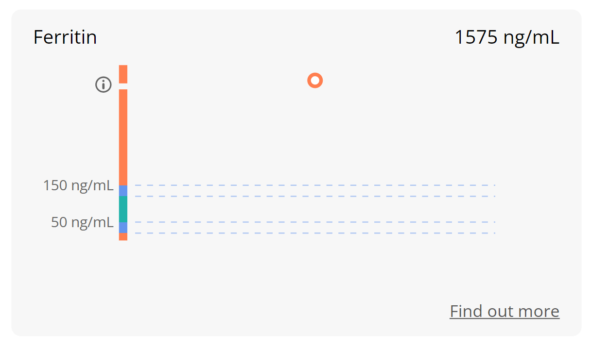 With each subsequent test, the customer observed a consistent reduction in ferritin levels, a positive indicator of progress and improved health.